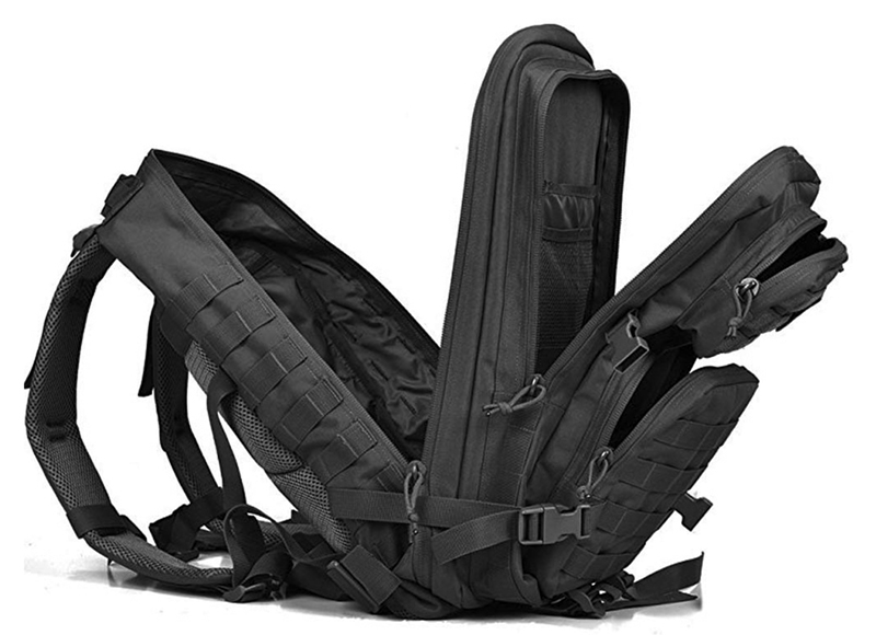 Spacious military backpack has multi-compartment and dual zippered closure pockets including interior zip pocket and mesh pocket for added storage options to meet your demands in daily life and outdoor.